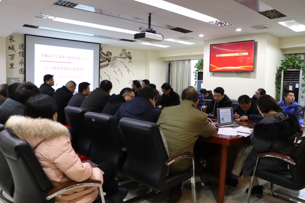1月8日上午,安徽遠信2018年第四季度項目管理工作例會在公司會議室召開。公司領導班子成員、各項目總監以及分公司代表參加了會議,部分總監代表列席會議。
